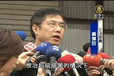 立法委員 黃偉哲:「只是做初步治療還沒有根治超級細菌的情況下,就放這個患者出去,我們覺得衛生署從H1N1到SARS到這段時間台灣所發生的流行性傳染病,他都沒有學到一個該學的教訓。」