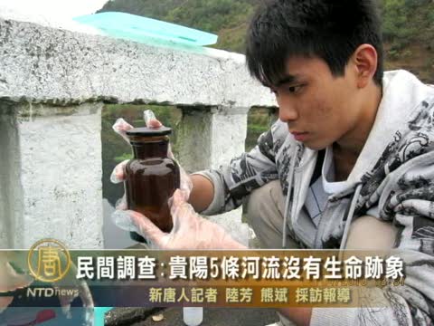 【新唐人2010年10月6日訊】中國貴州貴陽市民間環保組織首次對境內的98條河流進行大規模調查,發現有13條河流污染程度超過標準,有5條河流幾乎沒有生命存在。活動發起人表示,企業不負社會責任,政府監管不力是造成污染的原因。