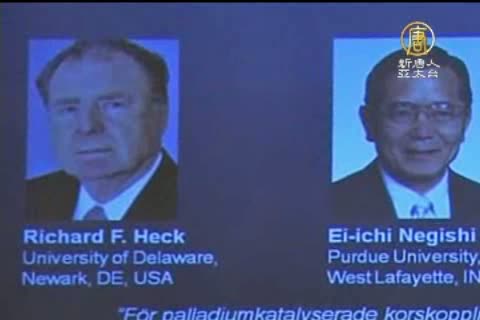 今年獲得諾貝爾化學獎的共有3位科學家。他們分別是美國德拉瓦大學的理查‧赫克(Richard F. Heck,University of Delaware, Newark, DE, USA,)教授,和美國普渡大學教授根岸英一(Ei-ichi Negishi,Purdue University, West Lafayette, IN, USA)以及日本北海道大學的名譽教授鈴木章(Akira Suzuki,Hokkaido University, Sapporo, Japan)。