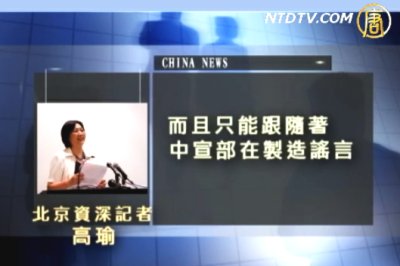 北京資深記者高瑜:「記者不但沒有新聞採訪自由,而且只能跟隨著中宣部在製造謠言,矇蔽人民,掩蓋一些真相,所以我覺得中國的新聞記者,要實現自己的為新聞而獻身這種美好的理想,首先一條要拿出真相,要掙脫中宣部的那種枷鎖。」
