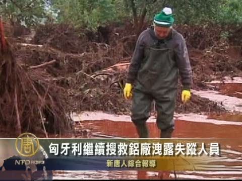 【新唐人2010年10月7日訊】匈牙利星期三仍在搜救兩天前在西部維斯普雷姆州發生鋁廠有毒廢水泄漏事故後失蹤的人員,這家鋁廠儲存有毒廢水的水池發生破裂,導致70萬立升有毒廢水流入附近的一個名叫科隆達爾的村莊,造成四人喪生,三人被報告失蹤。