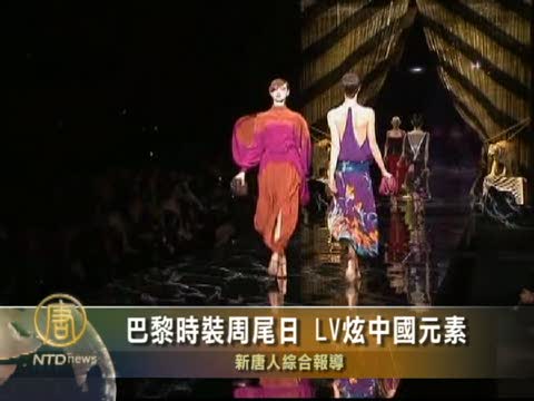 【新唐人2010年10月7日訊】10月6號(星期三)是巴黎2011春夏時裝周的最後一天。這天,世界頂級品牌路易.威登(LV)推出最新一季設計,獨特韻味的中國元素,帶給了人們耳目一新的中國風。