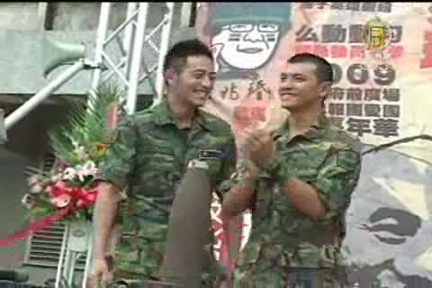 【新唐人亞太台2010年10月7日訊】除了國慶日當天會有精彩的表演,全台各地都舉辦雙十節慶祝活動。金門提前舉辦一系列戰地文化體驗活動,日前一場kuso版的軍事趣味運動會,請來了當紅軍教片演員助陣,劇中飾演「羅剛」的唐豐、「王威班長」趙駿亞一到場,就吸引粉絲爭睹風采。