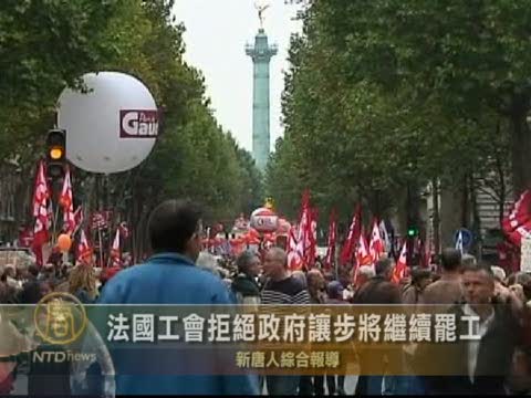 【新唐人2010年10月8日訊】法國一個主要工會的領導人星期四拒絕了法國總統薩爾科奇就退休計劃改革作出的讓步,他表示工會仍然將在10月12日動員罷工,到時許多公共服務部門都會受到影響.