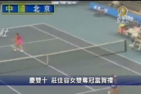 【新唐人亞太台2010年10月10日訊】台灣網球好手莊佳容在雙十國慶,傳來捷報,週日凌晨12點半,莊家容在中國網球公開賽女子雙打決賽中,第3盤搶10勝出,最後以7:6、1:6、10:7打敗大會頭號種子,拿下今年第2座女雙冠軍。喜訊越洋傳來,正好是給中華民國九十九歲生日的,最好賀禮。