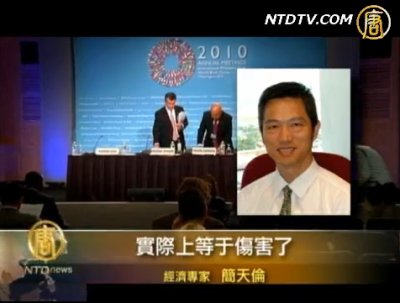 【新唐人2010年10月11日訊】中國人民幣匯率被嚴重低估的議題,隨著中共總理溫家寶的歐洲之行越演越熱。在國際的施壓下,溫家寶反擊說「人民幣若自由浮動,對中國和全球都是災難。」那麼經濟專家又是怎麼看呢?下面請看本臺記者帶來的報導。
