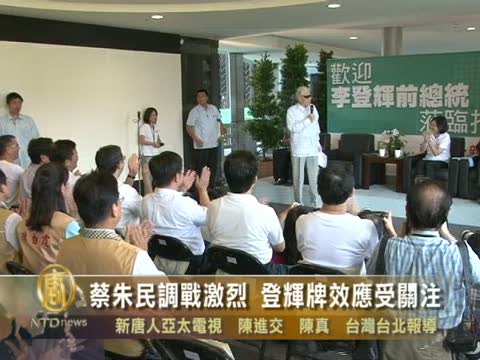 【新唐人2010年10月12日訊】距離年底五都選舉只剩一個多月,民進黨蔡英文陣營今天公布民調顯示,蔡英文首度高出對手朱立倫0.4個百分點,還請來前總統李登輝助選,營造團結氣勢﹔對此,朱立倫表示尊重,強調自己其實爭取到更多中間選民。