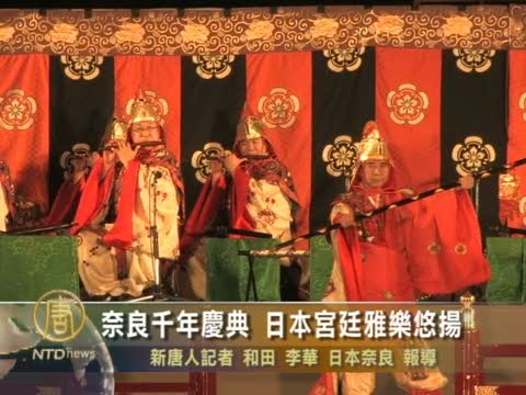 【新唐人2010年10月12日訊】想聽聽一千多年前的日本宮廷雅樂嗎?日本知名的古都奈良平城京,正在舉行遷都1300年慶典,10月10號的重頭戲就是宮廷雅樂的演奏會,帶領大家重回當年的輝煌。寧靜平和的樂曲,聽得現場民眾直說非常感動。