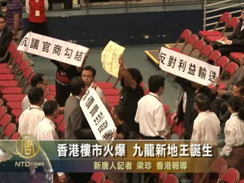 【新唐人2010年10月13日訊】香港樓市持續火爆,在星期三行政長官公布施政報告前夕,香港政府賣地再誕生九龍新地王,由華懋集團以16億3千萬港元奪得。