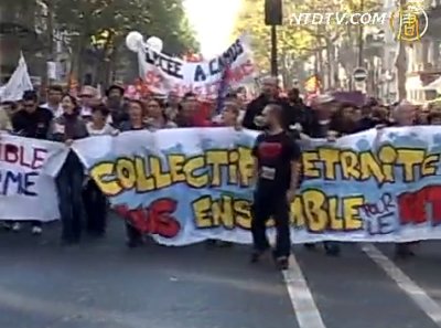 【新唐人2010年10月13日訊】自6月16日法國政府的退休改革草案出臺後,引起了反對黨和工會的強烈反對,法國議會和各大媒體也展開了激烈的辯論。10月12日,法國工會組織了更大規模的遊行抗議。法國勞工部長沃斯已表示會對部分細節進行修改。