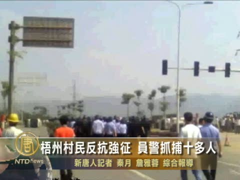 【新唐人2010年10月15日訊】廣西梧州市蒼梧縣村民因反對政府強徵土地,引發逾千人騷亂後,週四當地氣氛仍然緊張,近百名警察仍駐紮村中,並追捕曾參與對抗行動的村民,至今有十多人被帶走。