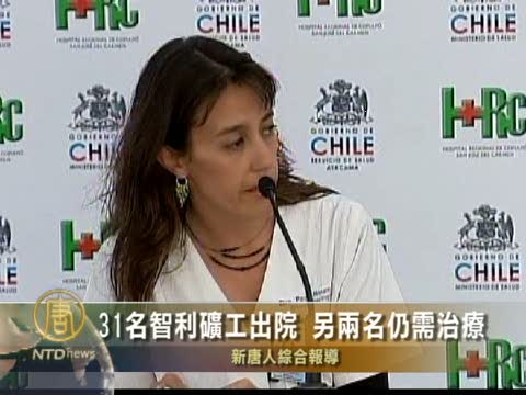 【新唐人2010年10月16日訊】受困地底60天的33名智利礦工,目前他們的身體情況良好,到15號(星期五) 為止,已有31人陸續出院回家,另外2人轉至普通醫院接受治療。