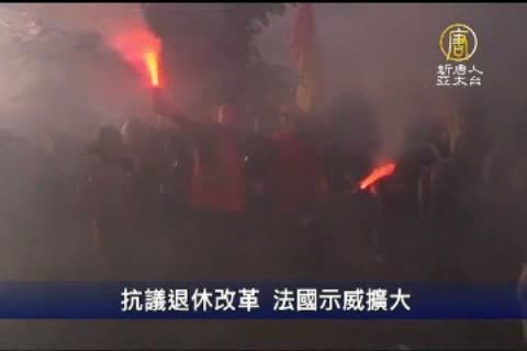 【新唐人亞太台2010年10月17日訊】10月16日,法國工會利用週末在全國展開更多的抗議活動,反對總統薩科齊試圖提高退休年齡。官方數字統計,已經有幾十萬示威者走上街頭,而活動組織者預計還會有更多人加入示威行列。