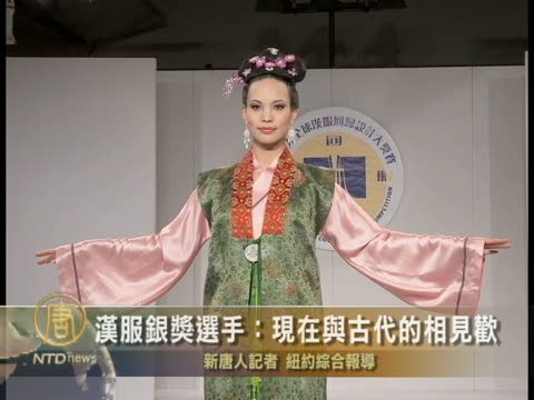 【新唐人2010年10月18日訊】同樣是T型舞臺,卻不見現代社會的緊張節奏。來自台灣的高透應,在本臺舉辦的第三屆全球漢服回歸設計大獎賽中,捧得銀獎。從小就夢想能穿上古畫中美麗衣裳的她,在大賽中用一套套精美唐裝,展現重返古代的欣喜。