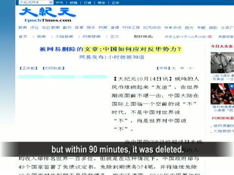 10月13號凌晨,一篇題爲《中國如何應對“反華勢力”》的文章,出現在《網易》網站,不過,僅僅存在90分鐘後,就被刪除了。