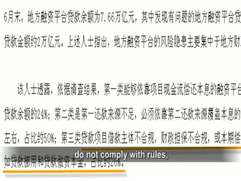 《中國證券報》報導,中國地方融資平臺貸款清查發現,在有問題的貸款金額中,貸款項目借款主體不符合規定,財政擔保不符合規定,本期償還有嚴重風險,貸款挪用和貸款被用作資本金的現象比較普遍。