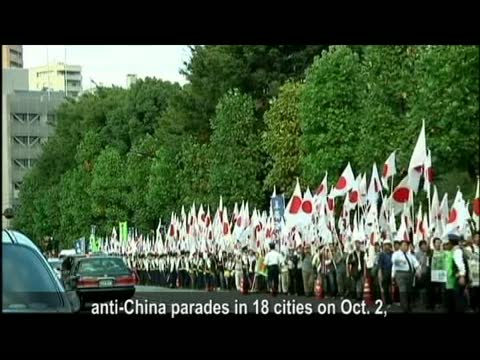 【新唐人2010年10月18日訊】中日釣魚島主權爭端再度激化。10月16號,日本右翼團體約6千人在東京舉行示威遊行﹔當天,中國成都、西安、杭州、鄭州等多個城市爆發反日示威,數萬民眾走上街頭遊行,四川綿陽17號也發生大規模反日示威,一些日資企業被砸。領土爭端促發中日民間對立情緒高漲。
