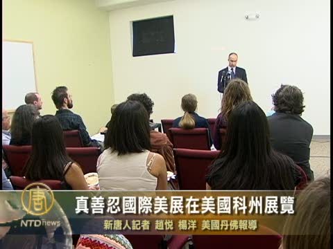 【新唐人2010年10月18日訊】真善忍國際美展在美國科羅拉多州博德市的那若巴大學Naropa University)畫廊開始展覽。吸引了不少當地民眾前來觀賞,也獲得了博德市市長為此專門頒發的褒獎。下面請看本臺記者從科羅拉多州發來的報導。