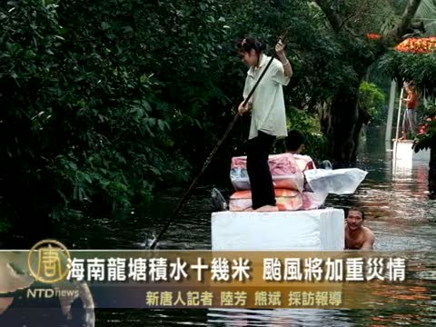 【新唐人2010年10月20日訊】中國海南省海口市瓊山區龍塘鎮,超過半數村莊內澇嚴重,積水未退,目前最深淹到十幾米高,當地民眾透露,龍塘鎮地勢低窪,蘊藏豐富的水資源,預料超強颱風“鯰魚”來襲將加重災情。