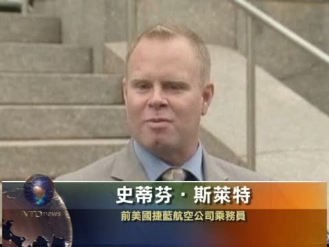 【新唐人2010年10月20日訊】10月19號(星期二),前美國捷藍航空公司乘務員史蒂芬.斯萊特,在紐約法庭上認罪,法庭判處他賠償捷藍1萬美元損失,先進行12個月的心理治療,之後會宣判具體刑期。今年8月9號,斯萊特與一名乘客爭吵後,啟動緊急逃生滑梯,離開飛機。