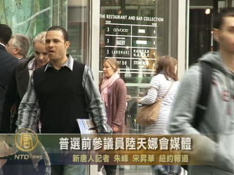 【新唐人2010年10月21日訊】11月2日就是紐約州普選了,競選州參議員的現任聯邦參議員陸天娜今天會見少數族裔媒體,承諾將全力推動移民改革、幫助小商業以及推動經濟發展等,來看報導。
