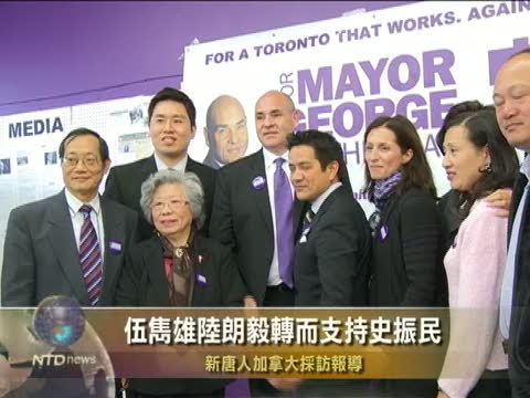 【新唐人2010年10月22日訊】在多倫多市選的最後時刻,市長候選人史振民獲得了另外一位退選的競爭對手,羅西陣營裡的支持。