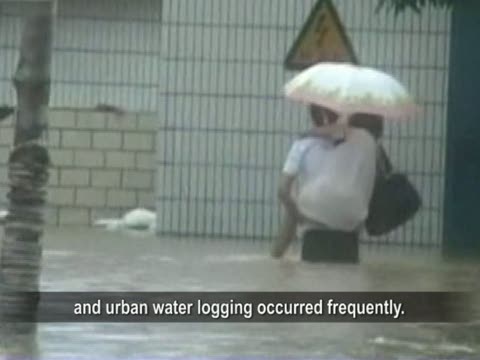 配音:今年入夏以來,中國南方地區汛情頻傳,各地暴雨、江河洪水、山洪、泥石流、滑坡、城市內澇等多種洪澇災害頻頻發生。海南十月初已經是暴雨成災了, 這幾天又出現暴雨,從畫面中可以看到,村莊被淹沒在大水中的慘狀,人民生命財產遭受了重大損失。