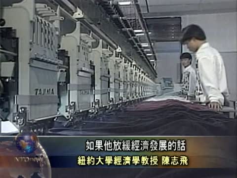 【新唐人2010年10月22日訊】中共官方公布的數據顯示,第三季度國內生產總值(GDP)較上年同期增長9.6%,與第二季度10.3%相比的增速有所放緩。美國紐約大學經濟學教授陳志飛表示,中國政府通過各種措施,使經濟增長速度放緩,目的是延續中共的統治,然而又使中共處於進退兩難的境地。