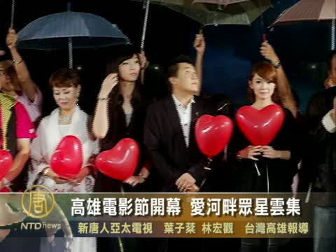 【新唐人2010年10月23日訊】21號夜晚,第10屆高雄電影節在電影圖書館開幕,入圍金馬獎14項的開幕片「當愛來的時候」演員全員到齊,「痞子英雄首部曲」導演蔡岳勳和電影節大使陳意涵聯袂站臺,吸引各界貴賓一百多人到場觀禮。