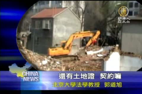 北京大學法學教授郭道旭:「按道理是不太合法的,他祖先留下的房子,那個是連房子和土地一塊買的。還有土地證,契約嘛,後來就這麼一下子宣佈城市土地都歸國有,他這個法律程式也是不太合適的。」