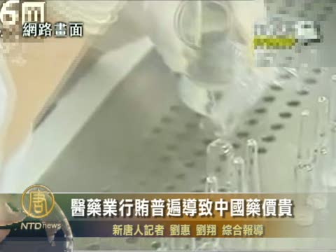 【新唐人2010年10月26日訊】藥品招標採購已成為普遍操作,藥價卻居高不下。安徽省一家地方藥品批發企業總經理最近透露,一種藥品從研發生產到病人手裡,要經過六、七個環節,招標採購只是其中一個環節﹔而其中各個環節都需要大量的公關費用,導致藥品價格居高不下。