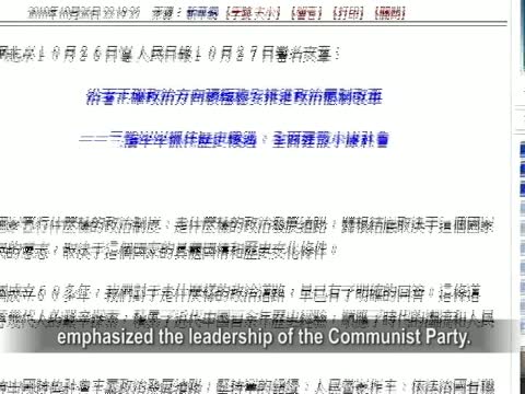 《中國事務》主編伍凡認為,這篇文章裏還提出“堅持共產黨的領導”,說明中共根本無意政改。
