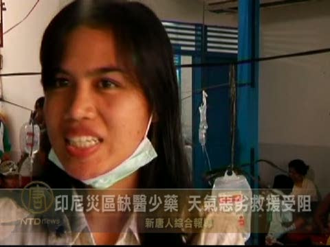 【新唐人2010年10月30日訊】星期五(10月29號),印尼受海嘯襲擊的明打威群島,已經有408人死亡,另外還有300多人失蹤。當地診所人滿為患,缺醫少藥。同時,印尼目前處在壞天氣的惡劣環境下,使得運送大量救援物質給海嘯災民遭受阻礙。