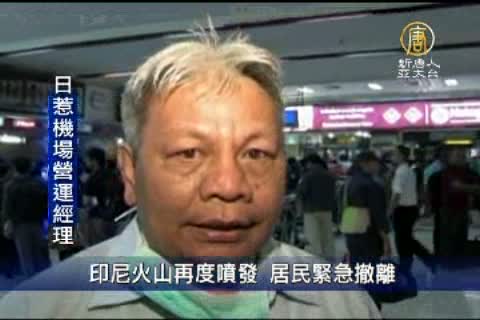 【新唐人亞太台2010年10月30日訊】印尼最活躍的梅拉比火山在星期六(10月30日)清晨再度噴發,火山煙灰直沖雲霄達到1300米以上。村民在聽到火山爆發的巨大聲響後,紛紛逃離危險地區,所幸無人傷亡。