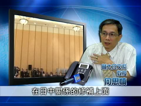 輔大日文系教授 何思慎:「從這次中國方面跟日本雙方首腦會談的波折,我們可以看的出來,在日中關係的修補上面,日本比中國要來的積極,日方比較主動,中國是比較被動的,換言之就是説,中國在修補日中關係態度上面,姿態比較高一點。」「現在距離APEC還有一段時間,我想日本跟中國,雙方還有時間進行磋商,胡錦濤應該還是會依照原來計劃,出席在日本舉行的APEC,至於說APEC會議上面,日本跟中國可不可以舉行一次正式的首腦會談,而不是像上次在走廊巧遇,或這次在會議之外,在休息室當中,兩個國家進行一個非正式的談話,讓雙邊關係能恢復過去他這種對話關係。」