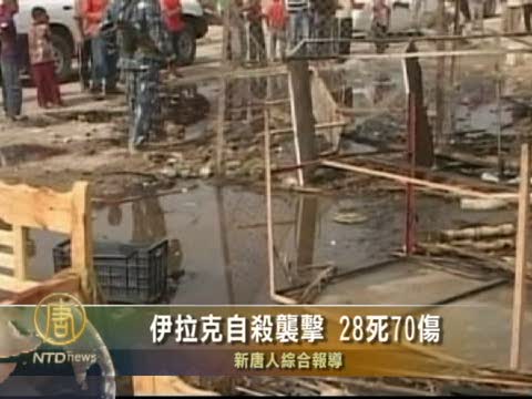 【新唐人2010年10月31日訊】10月29日,伊拉克東部省份迪亞拉發生一起自殺式炸彈襲擊,目前已造成至少28人死亡、70人受傷。這是該國九月初以來首次的重大自殺式炸彈襲擊。