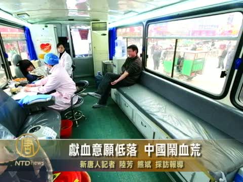 【新唐人2010年10月31日訊】近期中國很多大城市鬧血荒,昆明、青島、南京、北京等大城市血庫告急,往年以大學生和農民工為主的獻血人群,因為出現“信任危機” 而獻血意願低落,尤其害怕感染愛滋病等疾病是主要原因。