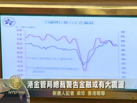 【新唐人2010年11月2日訊】繼香港前任金管局總裁任志剛警告全球金融亂情百年一遇之後,星期一,現任金管局總裁陳德霖針對當前經濟問題發出警告,指現在全球金融環境很不正常,可能出現一些比較大的震盪。