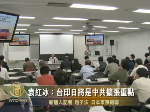 袁紅冰說,中共對資源進行毀滅性的開發和利用,對四億農民工近三十年血汗剝奪的經濟發展模式,積纍了巨大的經濟能量,從軍事、政治、經濟、宗教、媒體等方方面面向全球擴張的“超限戰”在幾年前已經開始,台灣、印度和日本是其三個依次擴張的重點。