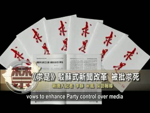 【新唐人2010年11月3日訊】中共機關刊物《求是》雜誌1號發表署名趙強的文章。文章提出,蘇聯解體原因很多,但新聞改革、輿論失控扮演了重要角色。外界輿論認爲,這篇文章應該是在爲中宣部管控媒體而進行辯護,而大陸網民則認爲,《求是》雜誌公開反對普世價值公認的新聞自由,是在“求死”。