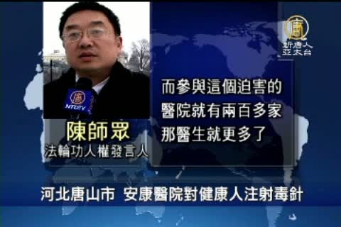 【新唐人亞太台2010年11月3日訊】帶您關心中國大陸真相報導。河北唐山市安康醫院是當地頗有名氣的大型醫院,最近從大陸傳出,該醫院在中共當局打壓法輪功中,已知對二十幾名原本身心健康的法輪功學員注射毒針,給他們造成難以恢復的傷害,多人致殘,甚至死亡。