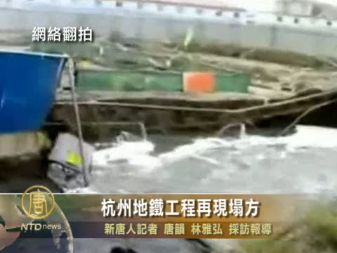 【新唐人2010年11月4日訊】浙江杭州市彭埠站地鐵工地,3號上午發生塌方,造成緊鄰工地旁的備塘河河水倒灌,進入工地中;據施工方表示,當時正好交班時間,地鐵工地內沒人,所以沒有造成人員傷亡。