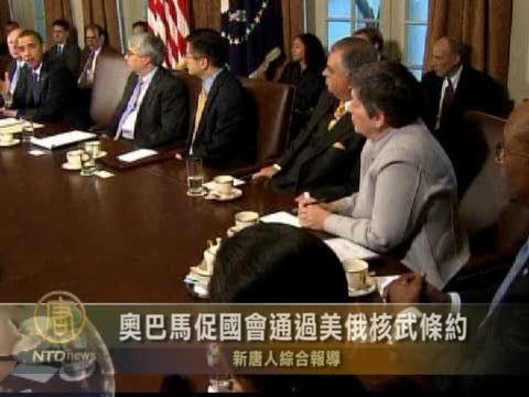 【新唐人2010年11月5日訊】美國中期選舉宣告結束,總統奥巴馬敦促國會在年終休會前,通過今年4月美俄簽署的新戰略核武器條約。根據新條約,美俄兩國將在7年內削減30%的核武儲備。