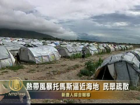 【新唐人2010年11月5日訊】11月4號(星期四)熱帶風暴託馬斯逼近加勒比島國海地,預計會增強為颶風。海地政府敦促民眾疏散,並下令學校關閉。聯合國維和部隊已開始幫助一些地震倖存者撤離帳篷營地。