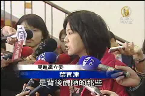 民進黨立委 葉宜津:「國民黨美麗的立委都很美麗,但是花博,花本身也很美麗,不美麗的是弊案是弊端,是背後醜陋的那些。」