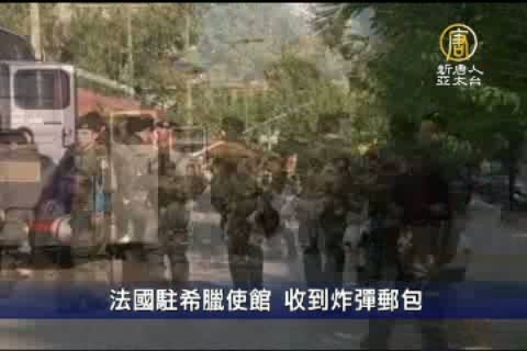 【新唐人亞太台2010年11月5日訊】希臘警方星期四(11月4日)在雅典引爆一個寄往法國大使館的郵包炸彈。這是最近三天內,雅典等國際城市發現的一系列郵包炸彈中的最新案例。