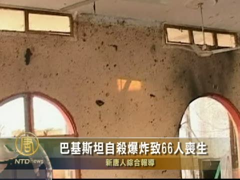 【新唐人2010年11月6日訊】巴基斯坦官員星期五(11月5日)說,一名自殺炸彈殺手在巴基斯坦西北部的一座清真寺引爆炸彈,造成至少66人死亡,近百人受傷 。