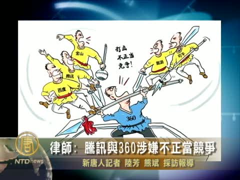【新唐人2010年11月6日訊】騰訊與360兩家公司的惡性競爭,不但引起了網民的強烈憤慨,大陸律師認為兩公司,已經涉嫌不正當競爭,而騰訊挾其市場優勢發出禁令,更違反了反壟斷法和消費者權益保護法。