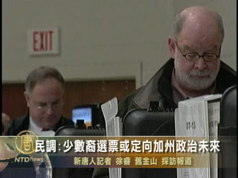 【新唐人2010年11月6日訊】剛結束的美國中期選舉,作為美國人口和經濟大州的加州,並沒有跟隨全美各地支持共和黨候選人的浪潮。加州依然是民主黨的藍色天下,原因是甚麼呢?一民意調查公司指出,少數族裔和移民選票起了重要作用,而且甚至可能影響未來的加州政治走向。