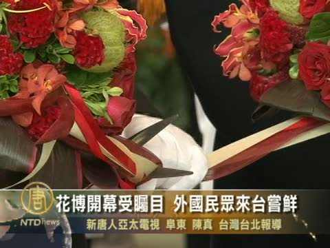 【新唐人2010年11月6日訊】臺北國際花卉博覽會,歷經四年籌備,11月6號正式開幕,因為天氣配合,加上之前試營運宣傳多,許多民眾早起排隊,不少國外民眾更是第一次來台灣,特地來花博嚐新鮮。